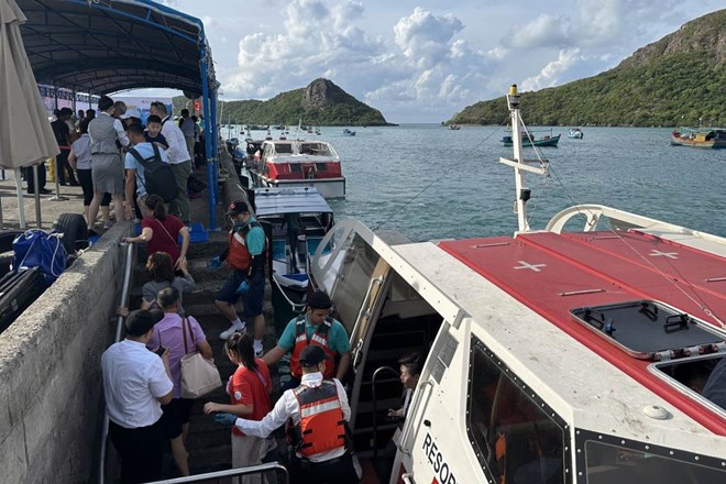 Một đoàn khách quốc tế đi tàu ra tham quan Côn Đảo (TPHCM). Ảnh: Thành An