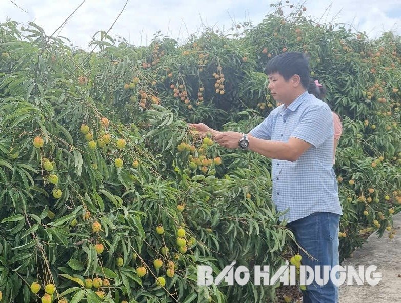 Vải thiều Thanh Hà ở tổ sản xuất số 10 xã Thanh Sơn (Thanh Hà) được 3 doanh nghiệp thu mua với giá cao