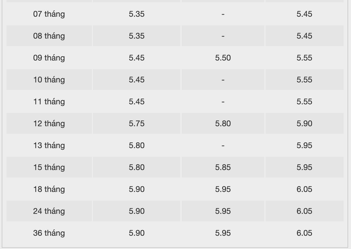 * Thông tin về lãi suất chỉ mang tính chất tham khảo và có thể thay đổi trong từng thời kỳ. Vui lòng liên hệ điểm giao dịch ngân hàng gần nhất hoặc hotline để được tư vấn cụ thể.