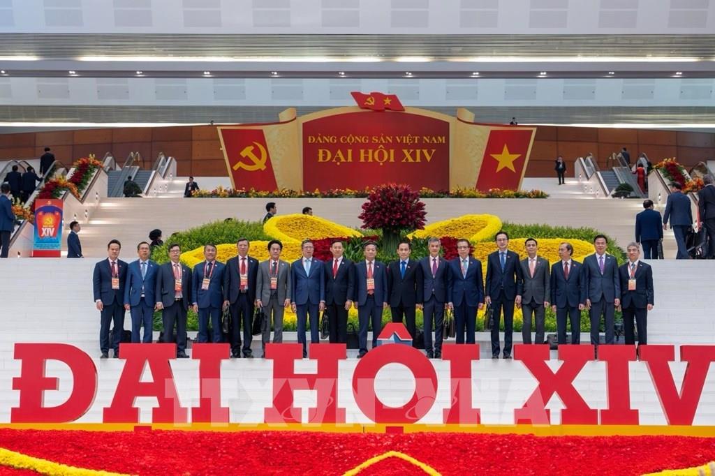 Đại sứ Trịnh Đức Hải (thứ ba, từ phải sang) cùng các đại biểu dự Đại hội XIV của Đảng. Ảnh: TTXVN