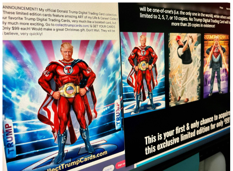 Ông Trump nổi tiếng đến mức có cả bộ thẻ bài siêu anh hùng mang thương hiệu “Trump” (ảnh: AFP-JIJI)