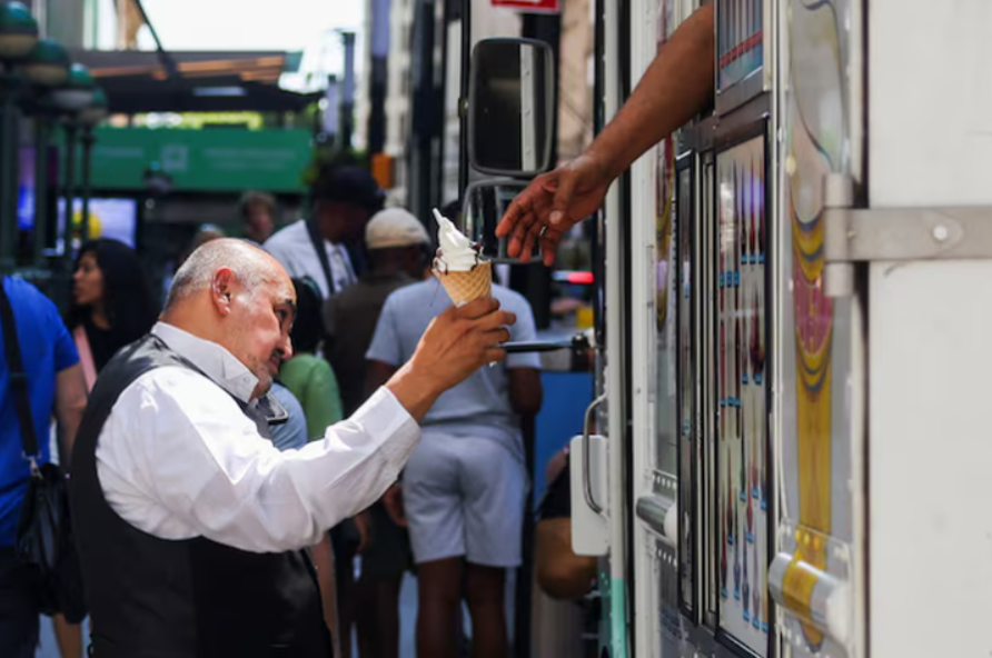 Người dân mua một cây kem ốc quế trong đợt nắng nóng mùa hè ở New York - Ảnh: REUTERS