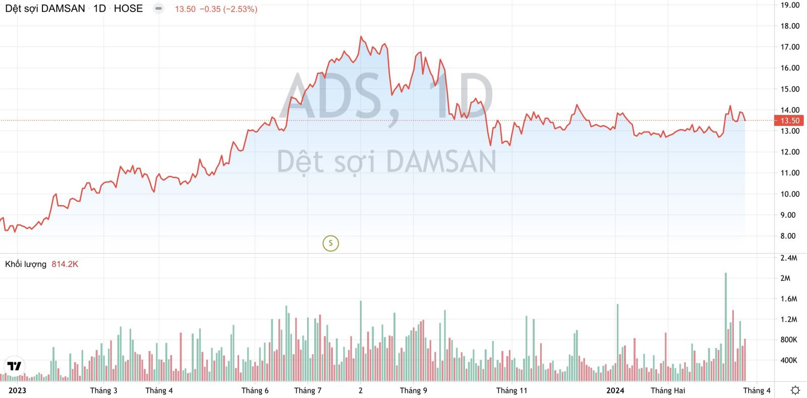 Công ty Cổ phần Damsan (Dệt sợi Damsan, mã cổ phiếu ADS) vừa cho biết doanh số xuất khẩu trong 2 tháng đầu năm nay đã tăng 41% so với cùng kỳ năm 2023.