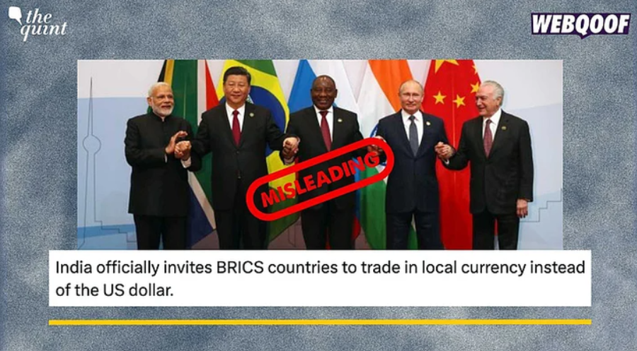 Trang tin Ấn Độ The Quint xác nhận thông tin nước này kêu gọi BRICS tránh sử dụng đồng USD là tin giả - Ảnh: THE QUINT