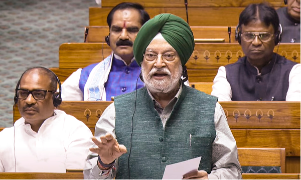 Bộ trưởng Dầu Khí Hardeep Singh Puri phát biểu trước Quốc hội Ấn Độ. Ảnh PTI