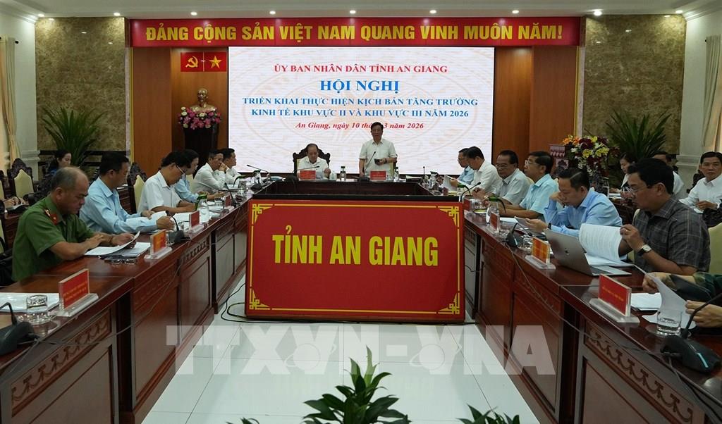 Kịch bản tăng trưởng kinh tế (GRDP) năm 2026 của An Giang đặt mục tiêu đạt từ 10,71% (phấn đấu trên 11%) năm 2026, trong đó, khu vực II 22,49%, khu vực III 11,36%. Tỉnh đổi mới mạnh mẽ, toàn diện trong quản lý kinh tế, đáp ứng yêu cầu phát triển trong tình hình mới; đẩy mạnh chuyển dịch cơ cấu kinh tế gắn với đổi mới mô hình phát triển kinh tế, công nghiệp hóa, hiện đại hóa lấy khoa học công nghệ, đổi mới sáng tạo, chuyển đổi số làm động lực chính; tập trung tối đa nguồn lực để đầu tư, từng bước hoàn thiện cơ sở hạ tầng, nhất là hạ tầng giao thông, cảng biển để thúc đẩy phát triển du lịch, thương mại và dịch vụ, tăng cường giao lưu kinh tế, đẩy mạnh liên kết vùng.