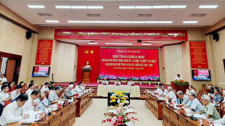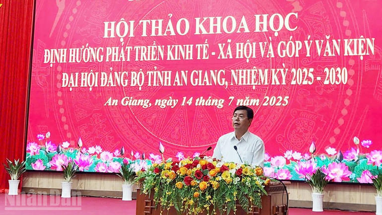Ngày 14/7, Tỉnh ủy An Giang tổ chức Hội thảo khoa học định hướng phát triển kinh tế-xã hội và góp ý văn kiện Đại hội Đảng bộ tỉnh An Giang, nhiệm kỳ 2025-2030. Đồng chí Lê Minh Hoan, Ủy viên Trung ương Đảng, Phó Chủ tịch Quốc hội dự Hội thảo.