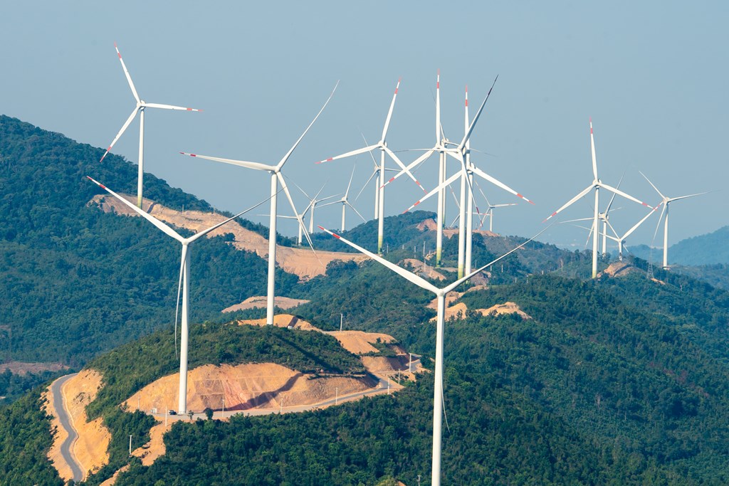 Cánh đồng điện gió Hoa Sen bên cạnh hồ thủy điện Rào Quán, xã Hướng Tân, huyện Hướng Hóa, tỉnh Quảng Trị (cũ), ngày 5/6/2023. Ngân hàng Phát triển Châu Á (ADB) đã triển khai Dự án Điện gió Hoa Sen và cung cấp các khoản vay xanh lớn tại đây cho ba công ty điện gió Liên Lập, Phong Huy và Phong Nguyên để xây dựng và vận hành ba trang trại điện gió với công suất 48 MW, tổng công suất 144 MW.