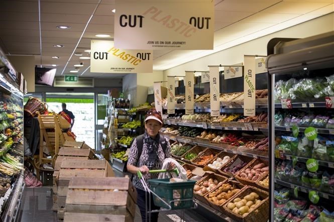 Người dân mua sắm tại một siêu thị ở Belsize Park, phía Bắc thủ đô London, Anh. Ảnh: AFP/TTXVN