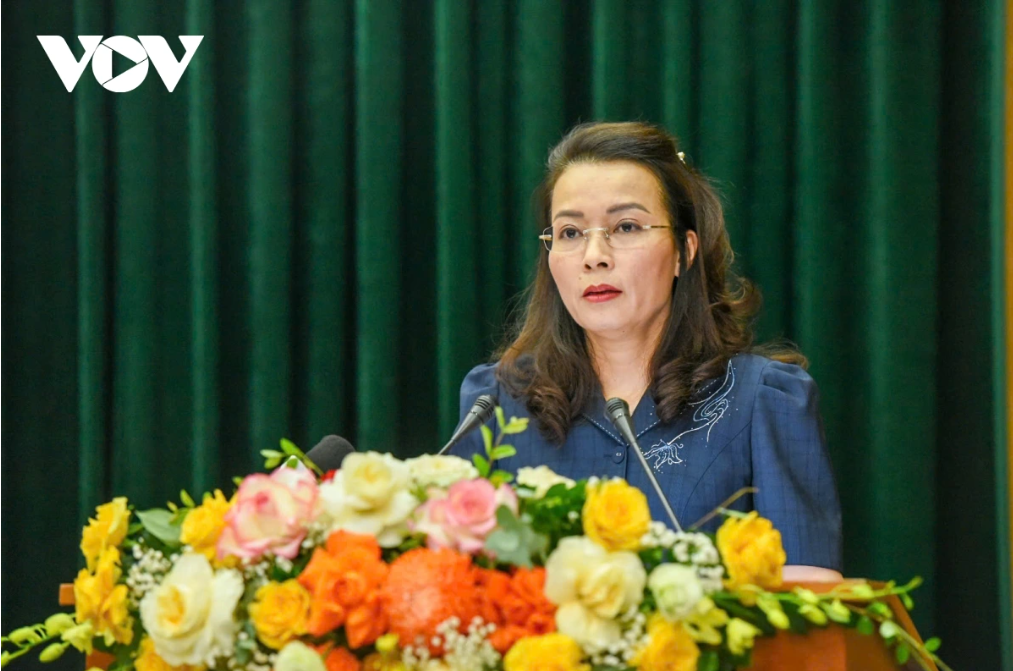 Bà Nguyễn Thị Hương - Phó Bí thư Thường trực Tỉnh ủy Bắc Ninh phát biểu tại họp báo
