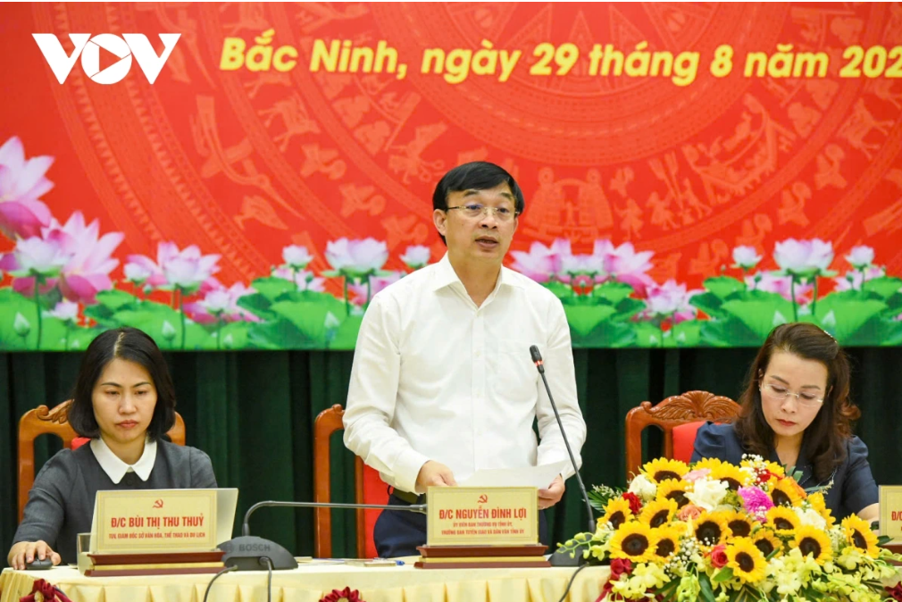 Ông Nguyễn Đình Lợi - Trưởng Ban Tuyên giáo và Dân vận Tỉnh ủy Bắc Ninh phát biểu tại họp báo