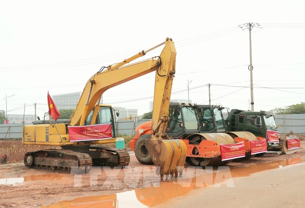 Máy móc, thiết bị đã sẵn sàng thi công dự án sau lễ khởi công. Ảnh: Đồng Thúy - TTXVN