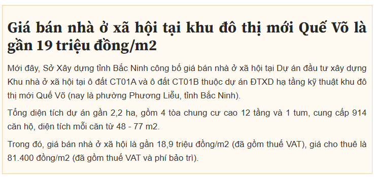 Bắc Ninh là địa phương có kết quả tích cực về xây dựng nhà ở xã hội. Từ đầu năm đến nay, tỉnh đã hoàn thành hơn 12.600 căn hộ, đạt gần 80% chỉ tiêu được giao trong năm (khoảng 15.920 căn). Tỉnh còn có ba dự án đang triển khai với số căn đăng ký hoàn thành hơn 3.600 căn trong cuối năm nay.