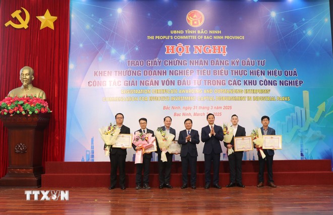 Tại hội nghị, Ủy ban Nhân dân tỉnh Bắc Ninh trao bằng khen cho 5 doanh nghiệp đã thực hiện giải ngân hiệu quả với tổng vốn giải ngân của đạt gần 1,2 tỷ USD, thể hiện sự trách nhiệm cao của nhà đầu tư và kết quả này sẽ góp phần quan trọng để tỉnh hoàn thành mục tiêu tăng trưởng năm 2025 và những năm tiếp theo của tỉnh.