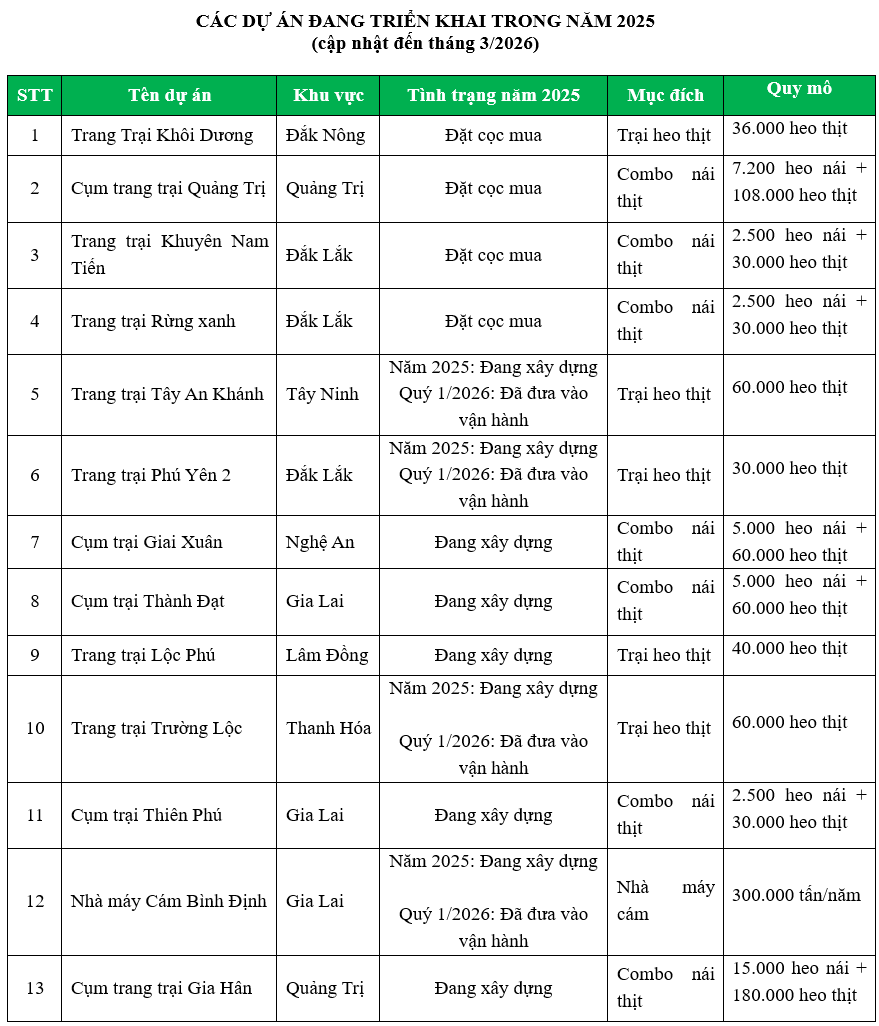 Trong bối cảnh ngành chăn nuôi chịu tác động kép từ dịch bệnh, thiên tai và biến động giá, BAF vẫn duy trì lợi nhuận sau thuế dương khoảng 127 tỷ đồng, cao hơn mặt bằng chung của ngành. Năm 2025, Công ty đưa vào vận hành 6 trang trại mới, nâng tổng số lên 40, đồng thời tăng công suất thức ăn chăn nuôi, đẩy mạnh đào tạo nhân sự và hoàn thiện chuỗi khép kín 3F và đến tháng 3/2026 đã có 24 trang trại đạt chuẩn quốc tế Global S.L.P (Global Smart Livestock Pratices). Quy mô đàn heo cuối năm 2025 đạt gần 900.000 con, tăng 56% so với cùng kỳ, trong đó gần 73.000 heo nái, tạo nền tảng nguồn cung ổn định.