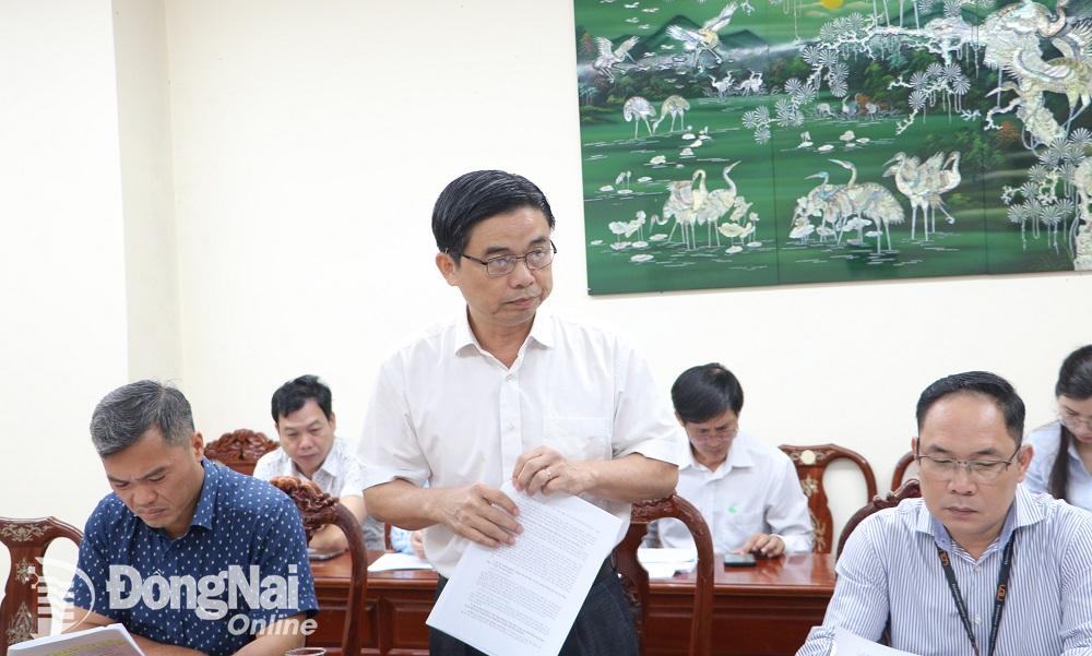 Giám đốc Ban Quản lý dự án đầu tư xây dựng công trình giao thông tỉnh Ngô Thế Ân phát biểu tại buổi làm việc. Ảnh: Phạm Tùng