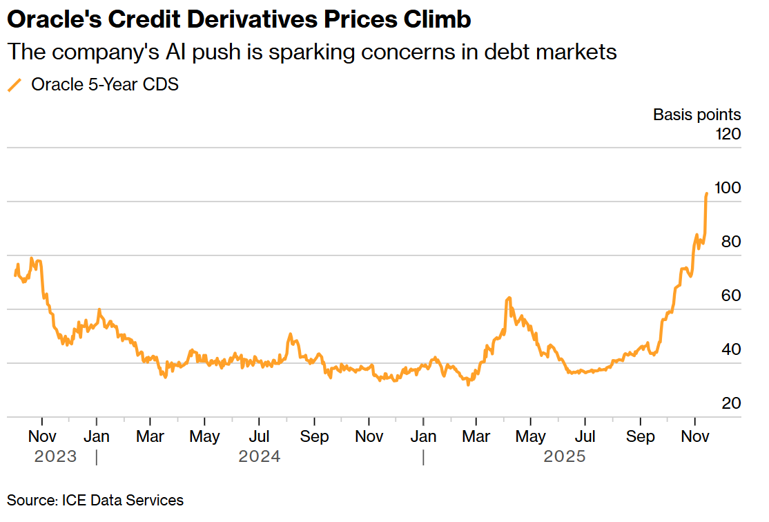 Chi phí CDS của Oracle đã tăng vọt khi công ty rót vốn lớn vào AI (Ảnh: Bloomberg)