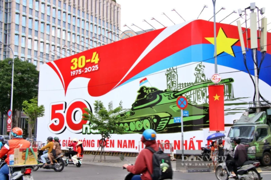 Đường phố TP.Hồ Chí Minh tưng bừng trước Lễ kỷ niệm. Ảnh: Dân Việt.