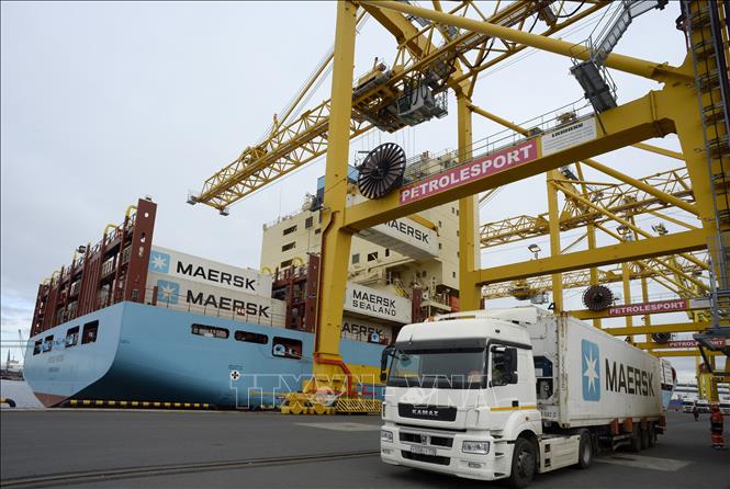 Vận chuyển hàng hóa tại cảng ở Saint Petersburg, Nga. Ảnh: AFP/TTXVN