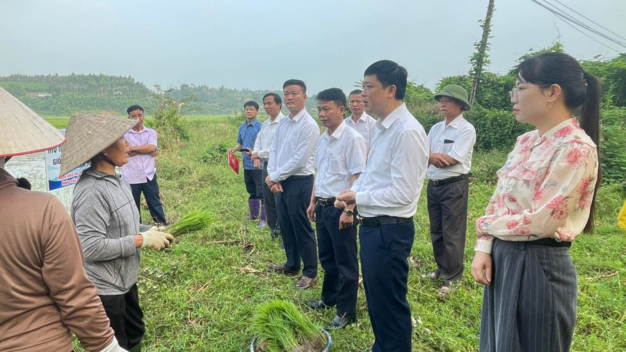 Việc trồng thử nghiệm giống lúa ST25 đã nhận được sự quan tâm, động viên trực tiếp từ các đồng chí lãnh đạo xã Hồng Sơn.