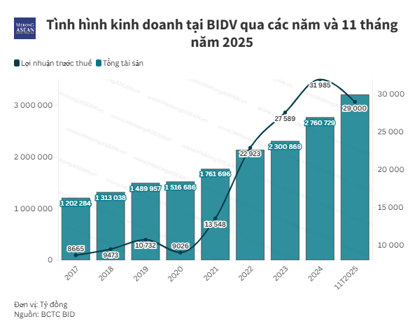 Kết quả kinh doanh đến tháng 11/2025 tại BIDV ghi nhận lãi trước thuế đạt hơn 29.000 tỷ đồng, tổng tài sản vượt 3,2 triệu tỷ đồng và dẫn đầu thị trường ở nhiều chỉ tiêu, từ tín dụng đến huy động và tín dụng xanh.
