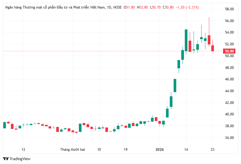 Dù triển vọng dài hạn vẫn tích cực nhờ vị thế ngân hàng quốc doanh chủ lực, Chứng khoán Rồng Việt cho rằng đà tăng mạnh đầu năm đã thu hẹp dư địa ngắn hạn của BID, nhà đầu tư nên kiên nhẫn chờ điểm mua phù hợp.