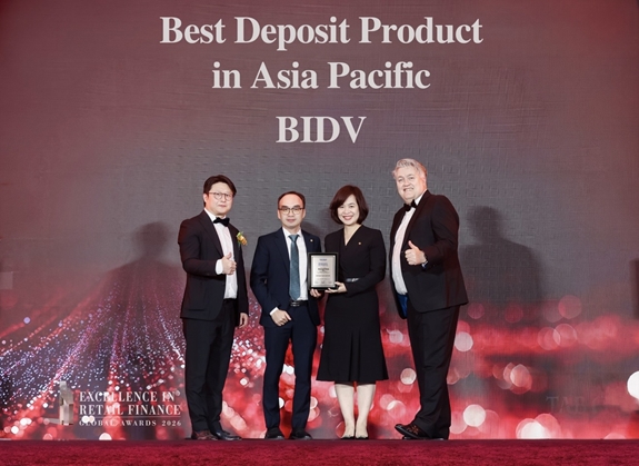 Ngày 12-3, tại Thượng Hải - Trung Quốc, trong khuôn khổ lễ trao giải TAB Global Excellence in Retail Finance Awards 2026, Ngân hàng TMCP Đầu tư và Phát triển Việt Nam (BIDV) được Tạp chí The Asian Banker vinh danh với bộ đôi giải thưởng danh giá gồm “Ngân hàng Bán lẻ tốt nhất Việt Nam” và “Sản phẩm tiền gửi tốt nhất khu vực châu Á - Thái Bình Dương”.