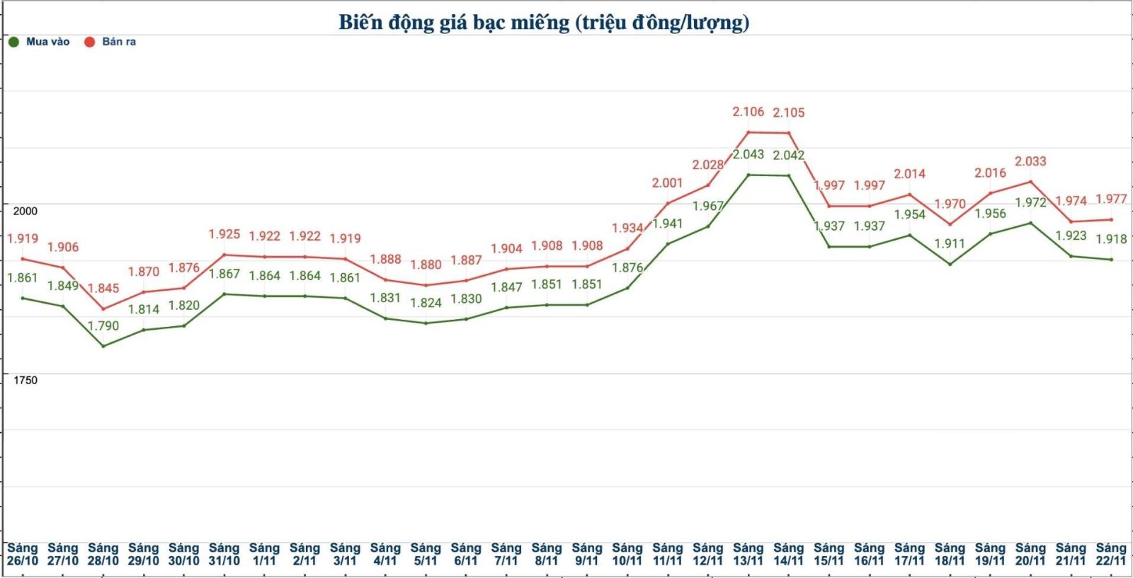 Diễn biến giá bạc trong nước những phiên gần đây. Biểu đồ: Phương Anh
