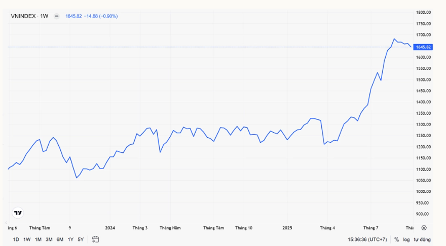 Diễn biến của VN-Index hai năm qua. Ảnh: Vietcap