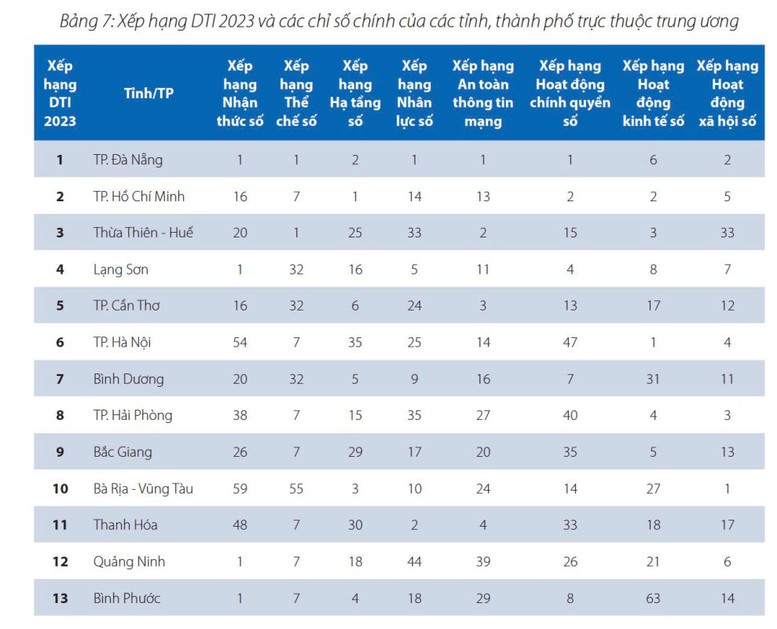 Bảng xếp hàng Chỉ số DTI được Bộ Thông tin và Truyền thông công bố.