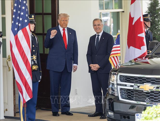 Tổng thống Mỹ Donald Trump (thứ 2, trái) và Thủ tướng Canada Mark Carney (thứ 2, phải) tại cuộc gặp ở Nhà Trắng, Washington, D.C., ngày 6/5/2025. Ảnh: THX/TTXVN