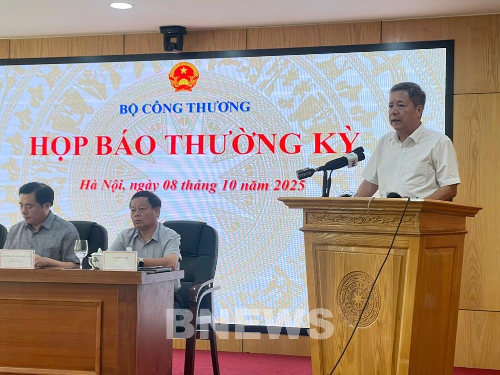 Chiều 8/10, Bộ Công Thương tổ chức họp báo thường kỳ quý III/2025, do Thứ trưởng Nguyễn Sinh Nhật Tân chủ trì, cung cấp các thông tin về chỉ số kinh tế, thương mại, thương mại điện tử, gian lận thương mại và các dự án năng lượng.