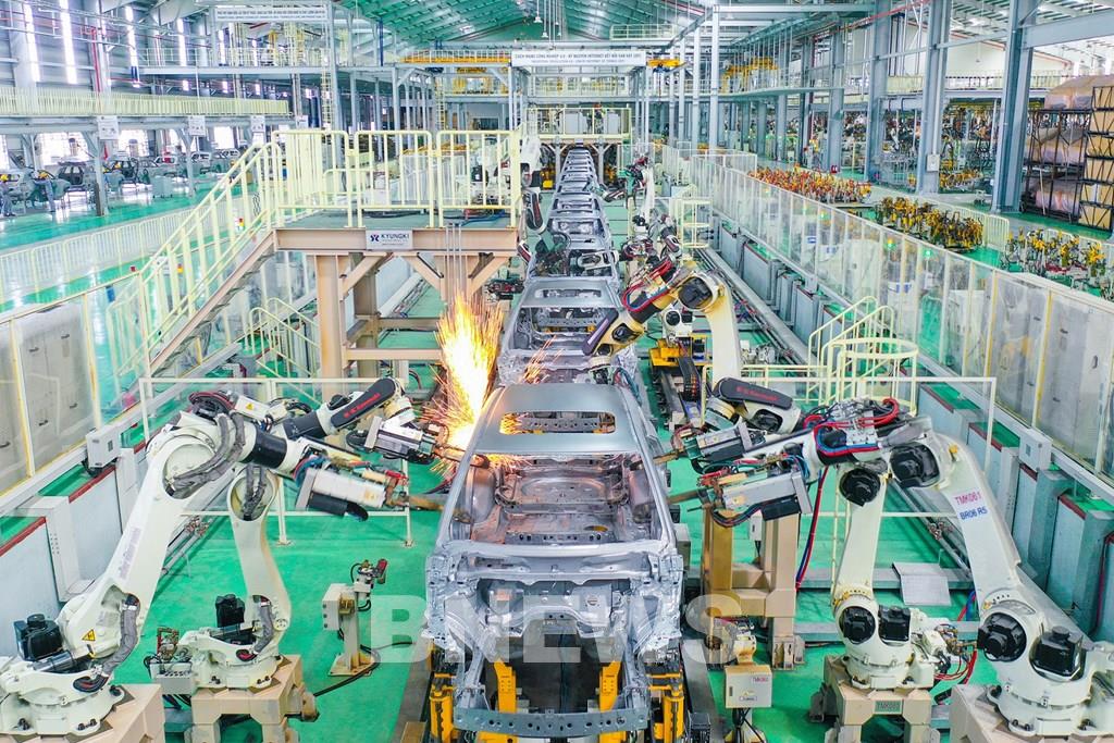 Dây chuyền sản xuất lắp ráp xe của THACO AUTO Chu Lai. Ảnh: BNEWS/TTXVN phát