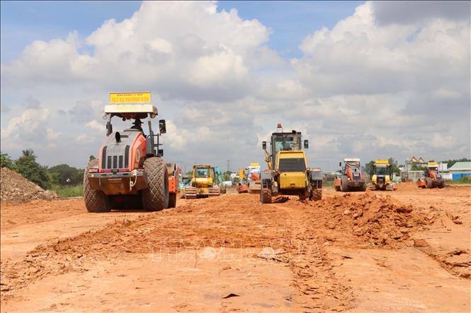 Nhân lực, máy móc thi công nền đường cao tốc Biên Hòa - Vũng Tàu, một trong nhiều dự án trọng điểm đang triển khai ở Đồng Nai. Ảnh: Công Phong/TTXVN