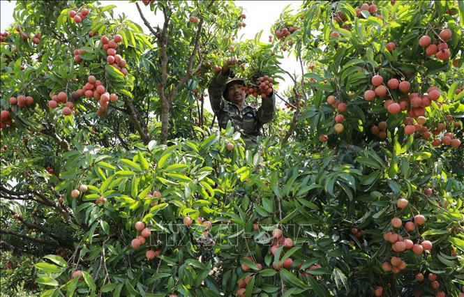 Thu hoạch vải thiều ở xã Hồng Giang, huyện Lục Ngạn. Ảnh tư liệu: Vũ Sinh/TTXVN