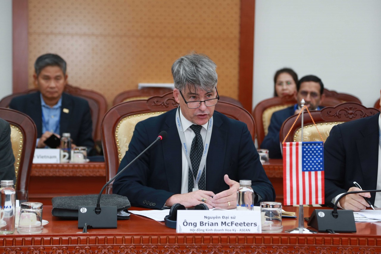 Ông Brian McFeeters, Phó Chủ tịch Cấp cao kiêm Giám đốc Điều hành Khu vực, Hội đồng Kinh doanh Hoa Kỳ - ASEAN phát biểu. Ảnh: Đức Minh
