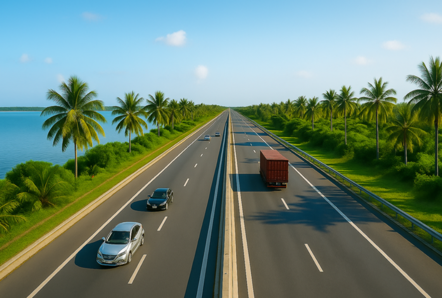 Tuyến đường ven biển Vĩnh Long được thiết kế rộng 22,5m với 4 làn xe cơ giới, 2 làn xe thô sơ - Ảnh minh họa: AI
