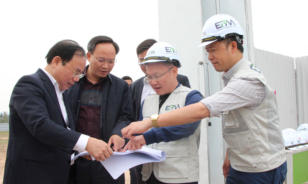 Đoàn công tác thăm dự án Khu nhà ở xã hội dành cho công nhân phường Nếnh, thị xã Việt Yên.