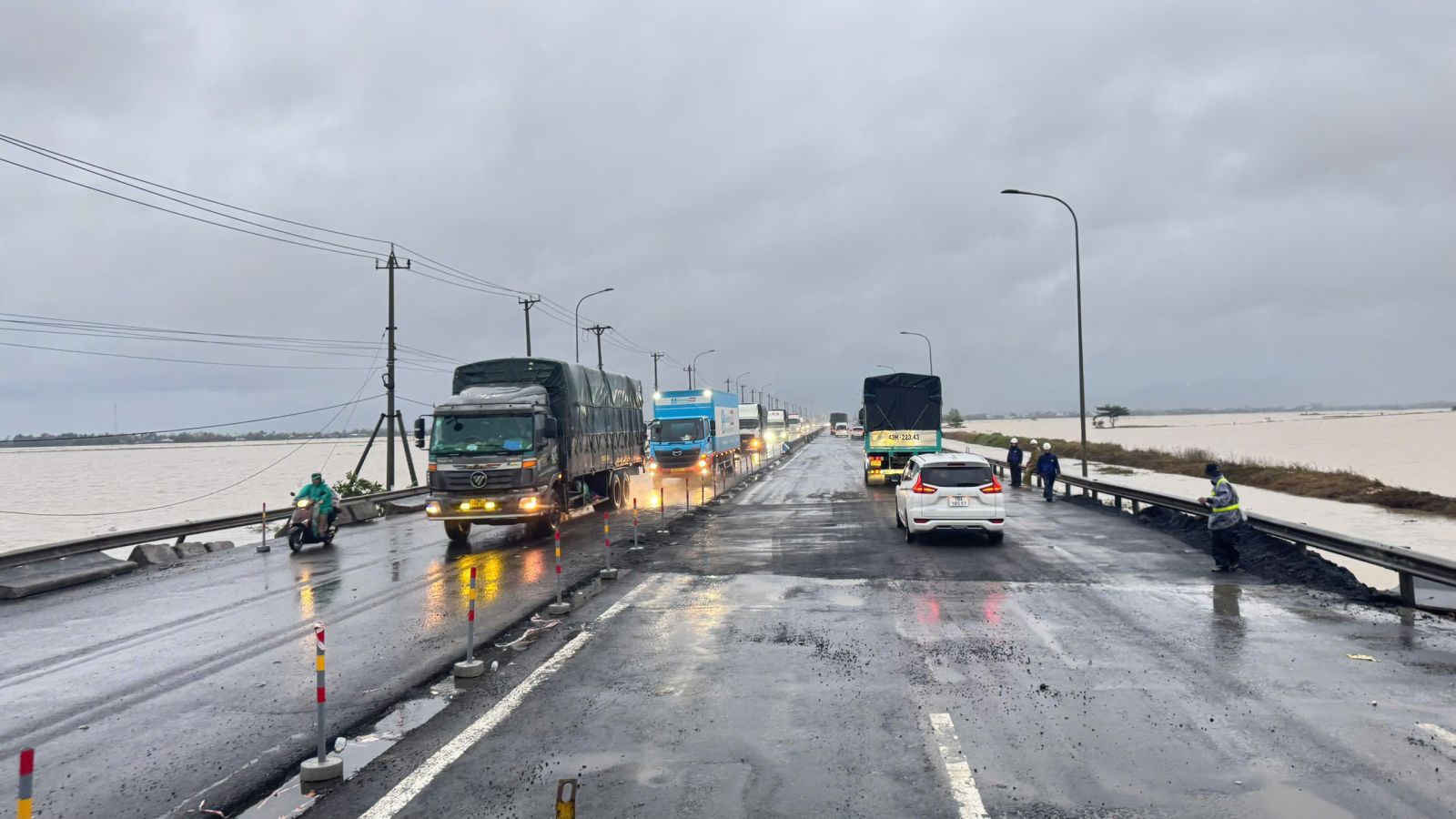 Hàng trăm điểm sạt lở lớn nhỏ xuất hiện sau mưa lũ, khiến nhiều tuyến quốc lộ tê liệt. Bộ Xây dựng yêu cầu túc trực ngày đêm, vừa chi viện vật tư, vừa trực tiếp chỉ đạo xử lý hiện trường nhằm sớm nối lại giao thông cho miền Trung - Tây Nguyên.