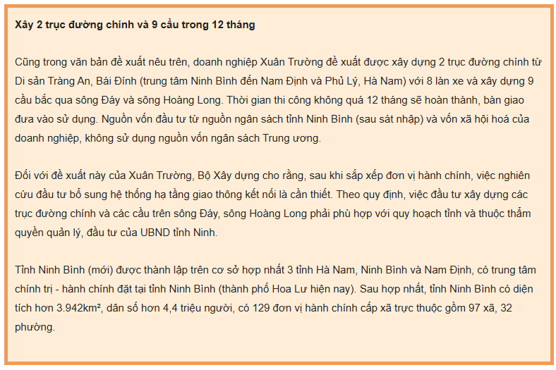 Bộ Xây dựng vừa có văn bản báo cáo Chính phủ với đề xuất của doanh nghiệp Xuân Trường về việc xây dựng sân bay quốc tế dự kiến tại huyện Ý Yên (tỉnh Nam Định) hoặc địa điểm do Bộ Xây dựng khảo sát và đề xuất. Nguồn vốn đầu tư từ nguồn ngân sách tỉnh Ninh Bình (sau sát nhập) và vốn xã hội hoá của doanh nghiệp, không sử dụng nguồn vốn ngân sách Trung ương, baochinhphu.vn đưa tin.