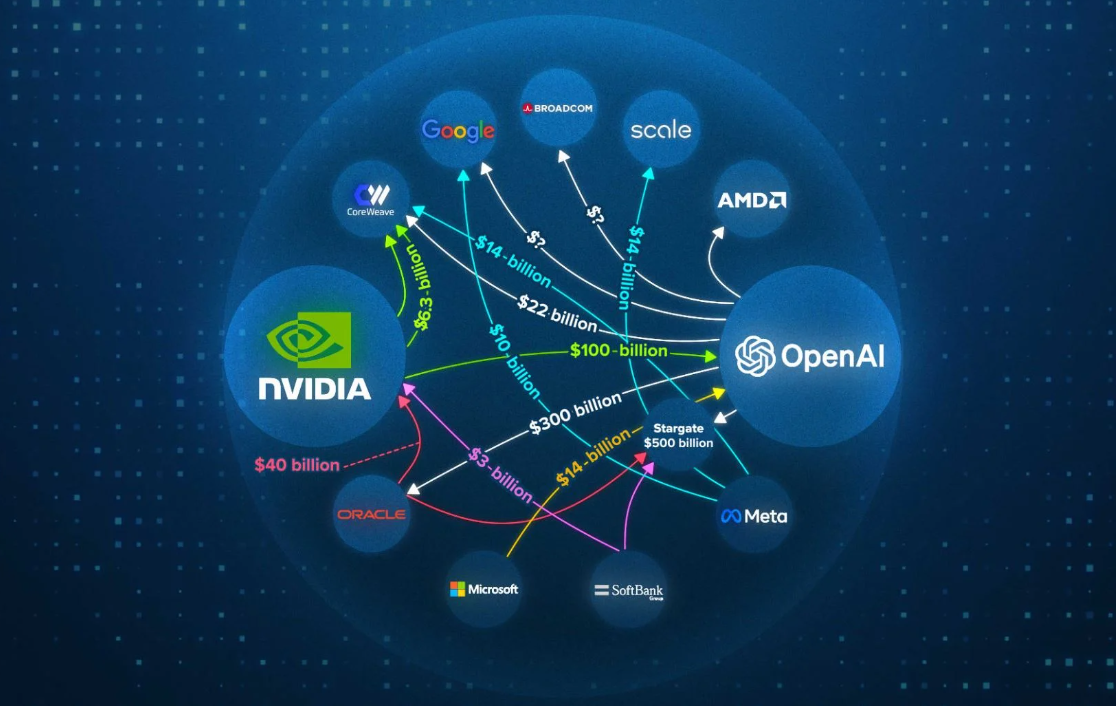 Đáng chú ý, chính các nhà sản xuất chip đang góp phần khuếch đại chu kỳ này. Nvidia rót vốn vào OpenAI, rồi OpenAI dùng số vốn ấy để mua chính chip Nvidia. AMD thậm chí cấp cho OpenAI quyền mua cổ phần 10% với giá gần như bằng 0, như một hình thức trợ cấp gián tiếp để thúc đẩy nhu cầu chip. Những mô hình đầu tư tuần hoàn như vậy làm tăng quy mô bong bóng và rủi ro hệ thống.