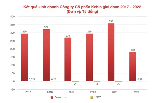 Theo tài liệu của Báo Thanh tra, doanh thu bán hàng và cung cấp dịch vụ của Kehin Group dao động khoảng từ 200 - 300 tỷ đồng/năm, với biên độ thăng giáng vài chục tỷ đồng. Cụ thể, giai đoạn 2017 - 2022, doanh thu lần lượt đạt 295 tỷ đồng, 322 tỷ đồng, 270 tỷ đồng, 295 tỷ đồng, 358 tỷ đồng và 182 tỷ đồng.