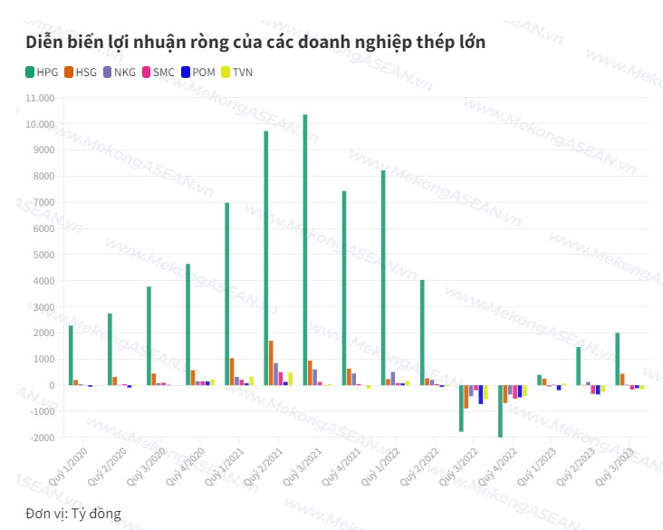Hai tên tuổi lớn là Tập đoàn Hoà Phát và Hoa Sen ghi nhận phục hồi mạnh trong quý 3/2023 nhưng hầu hết các doanh nghiệp còn lại đều thua lỗ.