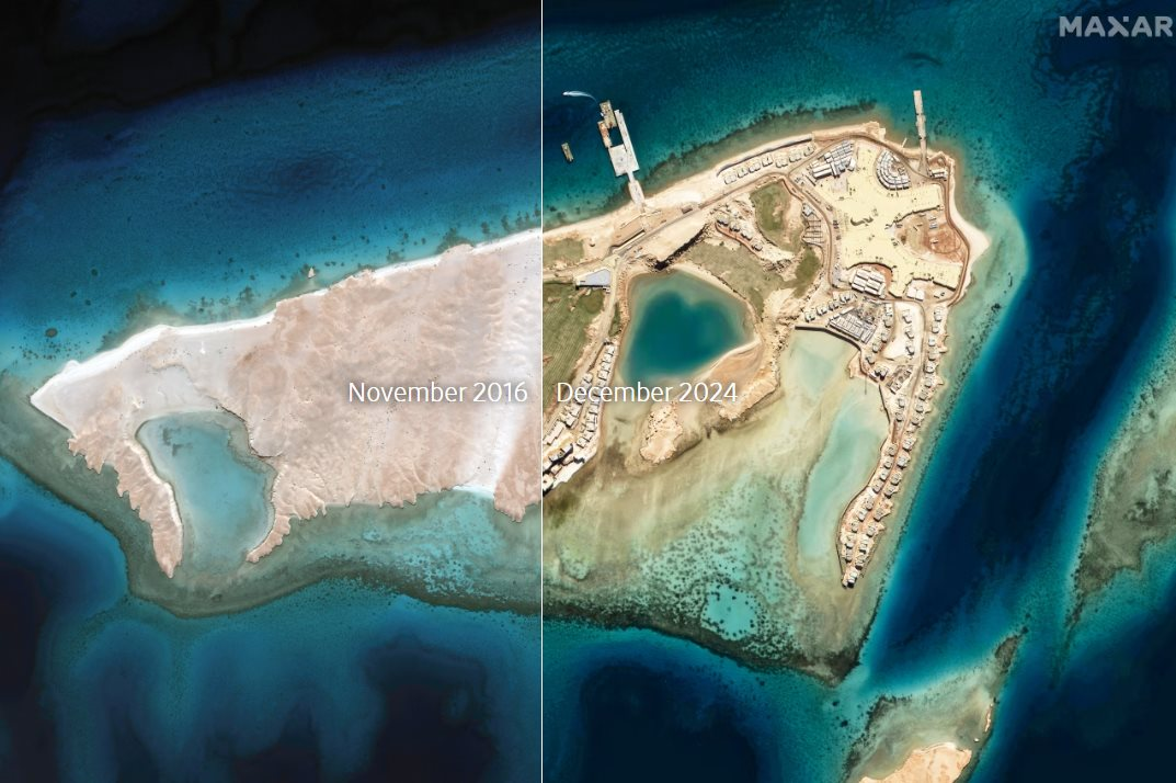 Hình ảnh vệ tinh Sindalah năm 2016 so với năm 2024.