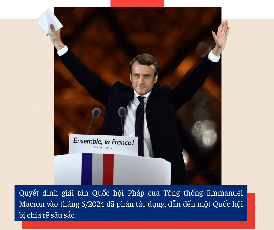 Chỉ trong vòng hai năm, nước Pháp đã thay tới 5 đời thủ tướng. Đây một kỷ lục chưa từng có trong lịch sử nền cộng hòa thứ năm của Pháp. Tình trạng bất ổn chính trị leo thang khiến Tổng thống Macron, dù đã quá quen với khủng hoảng, nay phải đối mặt với một thử thách khác: Làm sao duy trì ổn định trong khi quốc hội chia rẽ, nợ công phình to và nền kinh tế đang suy yếu.