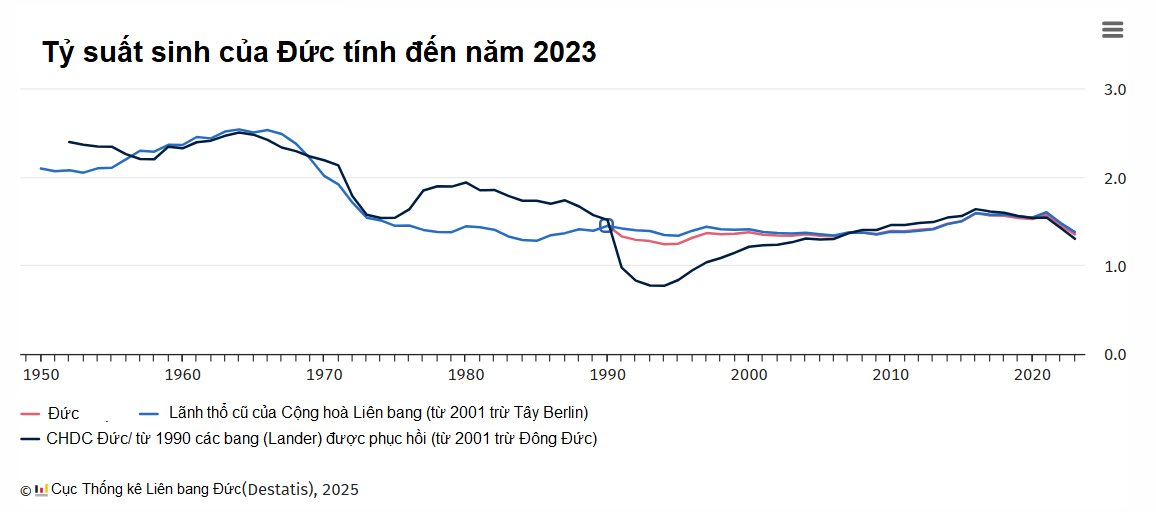 Nền kinh tế Đức cũng đang phải đối mặt với tình trạng thiếu hụt lao động. Giống như nhiều quốc gia khác trên thế giới, dân số Đức đang già đi. Trong khi đó, tỷ suất sinh của Đức thấp báo động, ở mức 1,35 ca sinh trên một phụ nữ. Thêm vào đó, tuổi thọ ngày càng tăng, khiến tỷ lệ người phụ thuộc (bao gồm người già, trẻ em) gia tăng, gây căng thẳng cho hệ thống an sinh xã hội và chăm sóc sức khỏe.