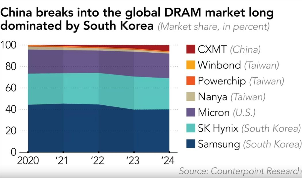 Năm 2024, CXMT thậm chí đã bắt đầu sản xuất hàng loạt bộ nhớ DDR5 vốn được SK Hynix thương mại hóa lần đầu vào năm 2020 và hiện vẫn đang là loại DRAM tiên tiến nhất.