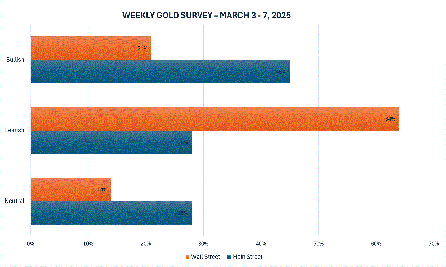 Kết quả khảo sát của Kitco News về dự đoán giá vàng thế giới tuần 3-7/3/2025.