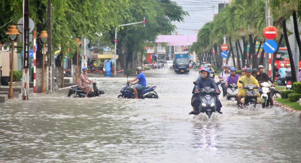 Mưa lớn, kết hợp triều cường dâng cao gây ngập khu vực nội ô phường Bạc Liêu, tỉnh Cà Mau (trung tâm tỉnh Bạc Liêu cũ) hôm 11/12.