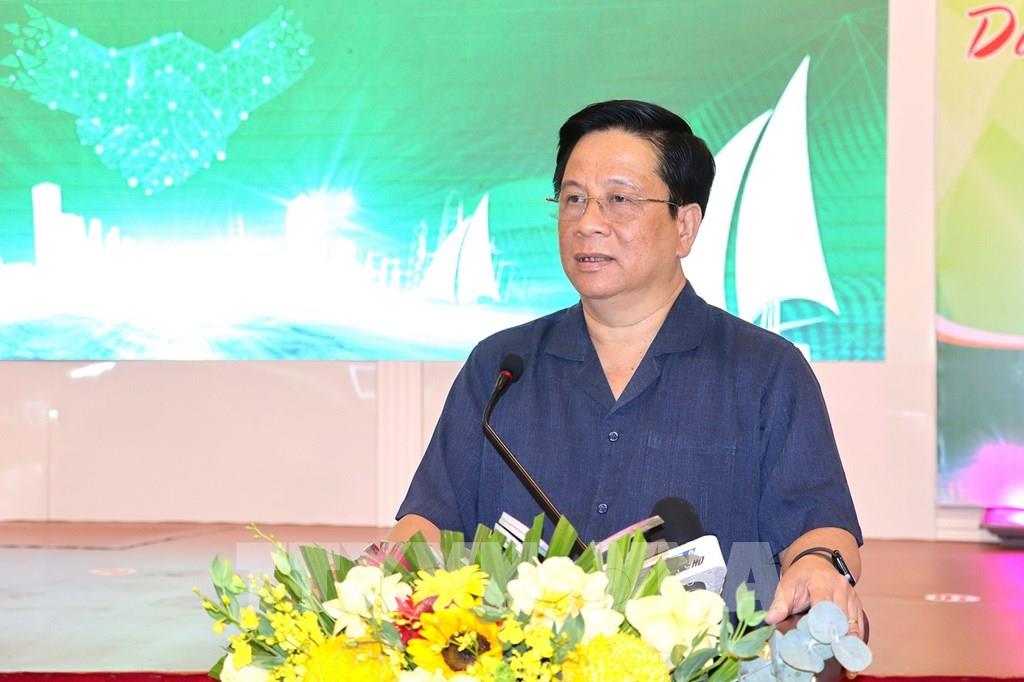 Chủ tịch UBND tỉnh An Giang Hồ Văn Mừng phát biểu tại buổi “Cà phê Doanh nhân”. Ảnh: Lê Huy Hải - TTXVN